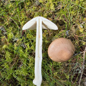 Lang, slank gråhvit stilk, ring som svartner, stor knoll