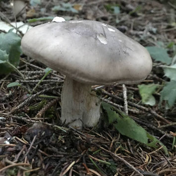 Hvelvet til traktformet, med melet eller pudret askegrå overflate